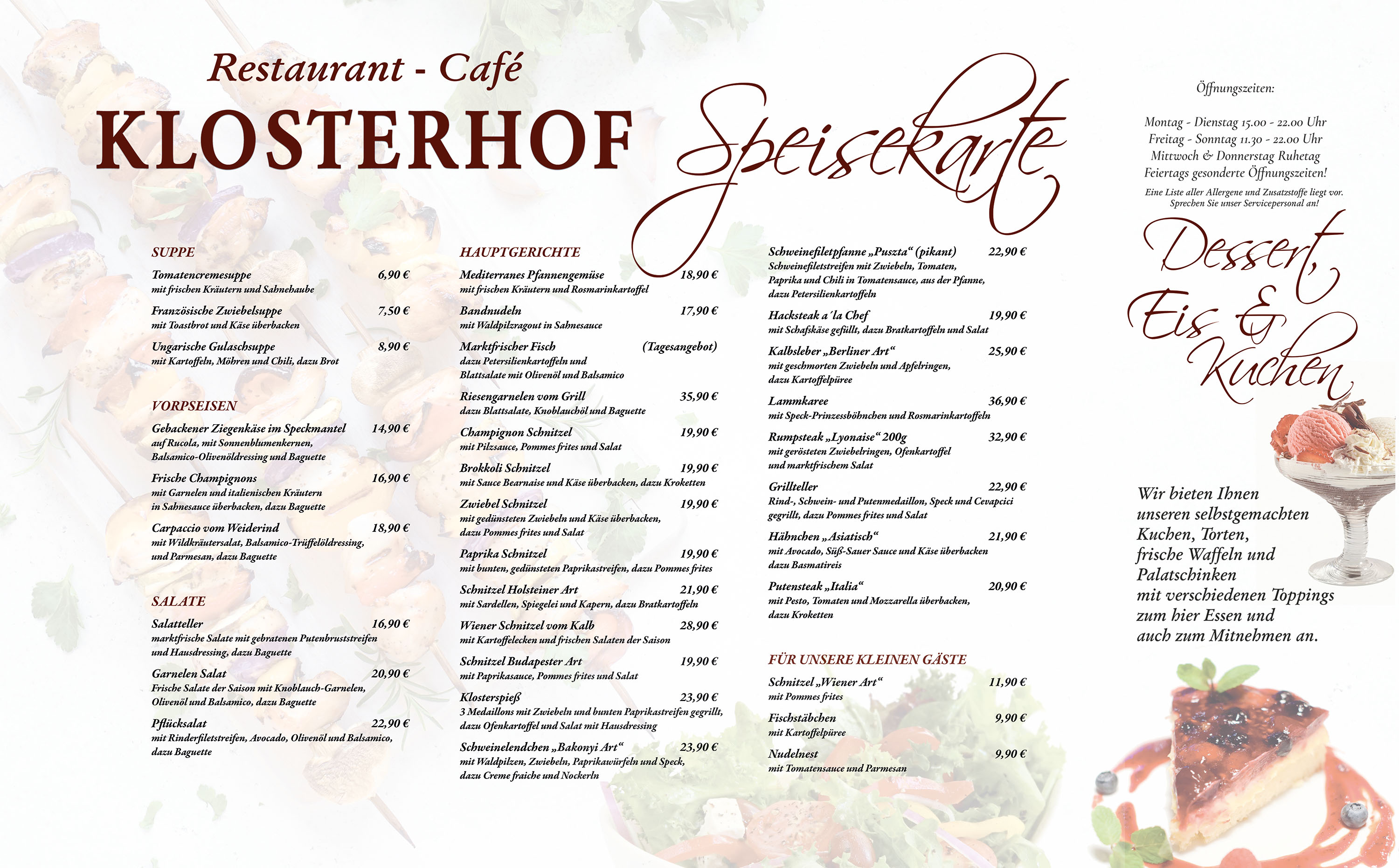 Nahe dem Kloster der Zisterzienser in Bochum-Stiepel gelegen, bietet Ihnen das Café-Restaurant Klosterhof ganzjährig eine regionale exquisite deutsch-ungarische Küche, ein spirituell geprägtes Ambiente und im Sommer einen wundervollen Ausblick von der Klosterhof-Terrasse!